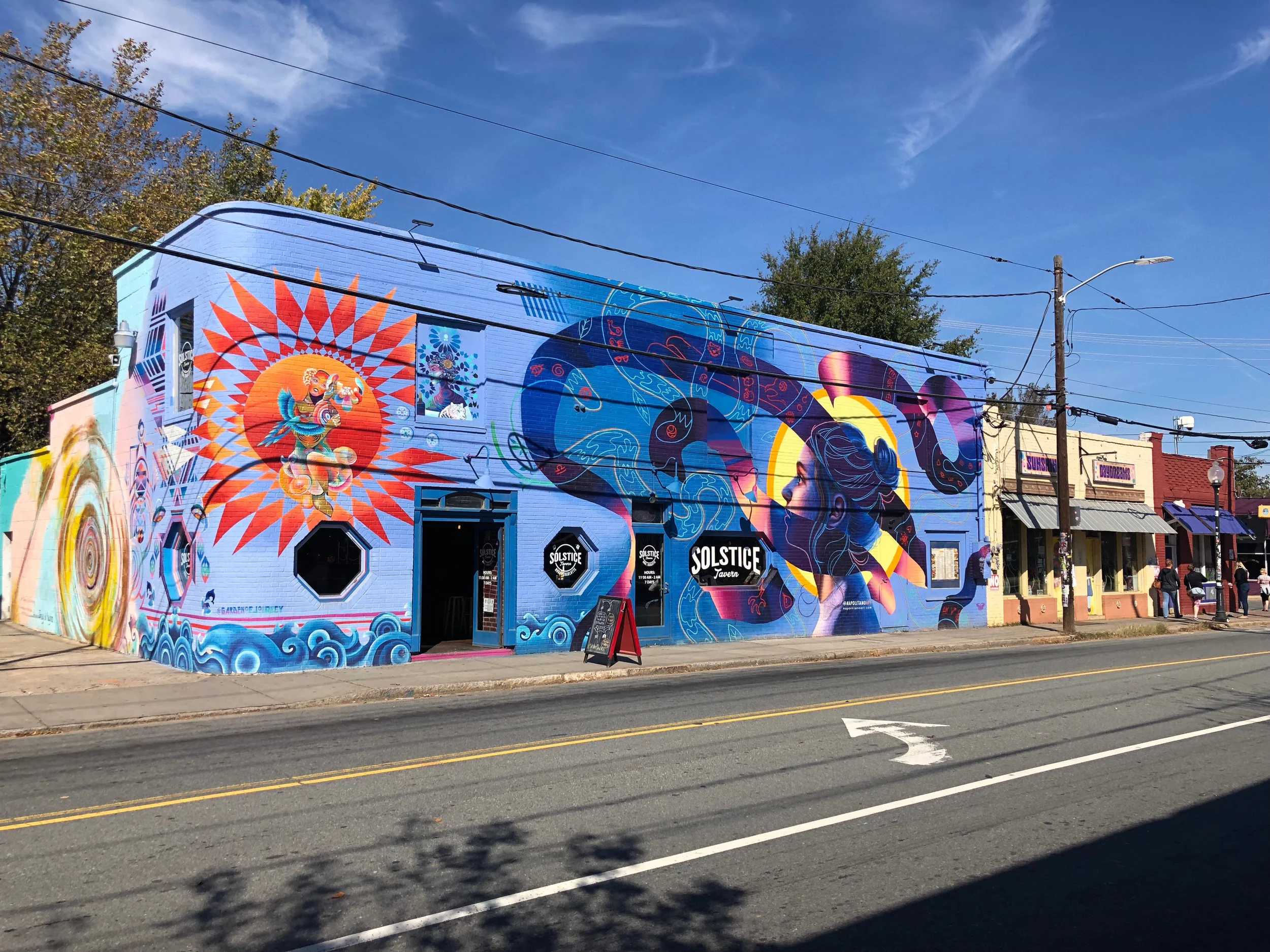 “NoDa" or North Davidson is the central village located within the neighborhood of North Charlotte. The neighborhood began development in 1903, and quickly became an area of textile manufacturing and mill workers' residences. Recently NoDa has been transformed, and serves as a center for the arts and entertainment in Charlotte, with bimonthly gallery crawls, several locally owned performance venues, restaurants, breweries, and small shops prominently featured in the eclectic neighborhood.